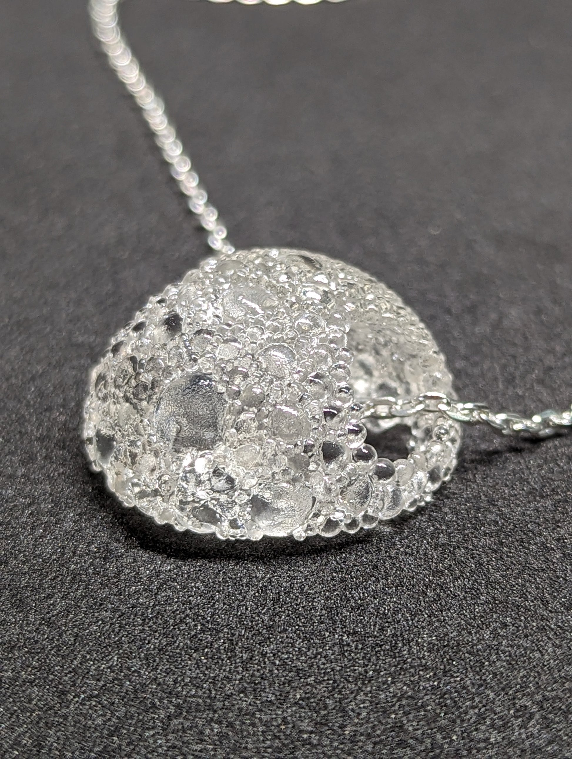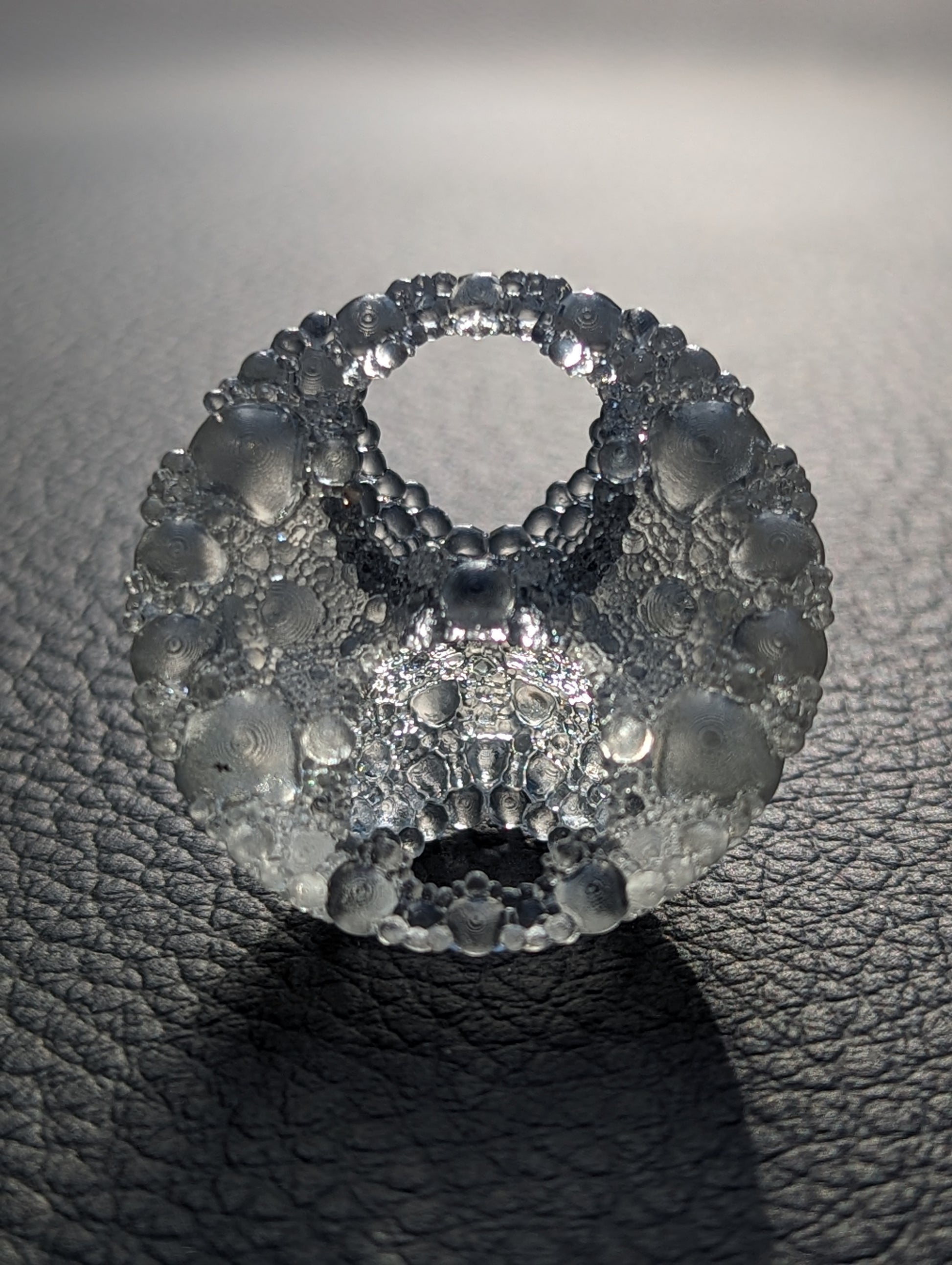 The Fractal Pendant showcases the elegance of an Apollonian fractal sphere packing in a beautifully crafted pendant. An Apollonian fractal s a dense arrangement of spheres where smaller spheres fill the gaps between larger, touching spheres, creating a fractal structure.